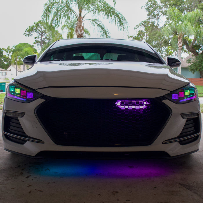 Upgrade your 2017-2018 Hyundai Elantra Sport with the Velossa Tech BIG MOUTH LIT KIT, combining an aggressive look with enhanced performance. Compatible with stock or aftermarket cold air intakes, this innovative system features uninterrupted light diffusion for a striking effect.